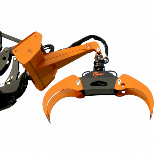 Bei den Greifarmen der Holzzange wird hochfester Feinkornstahl verarbeitet und sämtliche Lagerungen sind mit schmierbaren Bronzebuchsen versehen. Durch die Signalfarbe auf den Greifarmen ist die Position dieser immer gut erkennbar.