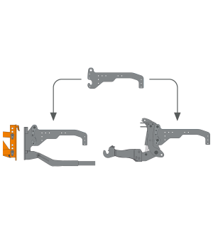 Um eine besonders vielseitige und komfortable Befestigung des Oberlenkers zu ermöglichen, gibt es bei den Fronthubwerken eine neue Halterung. Diese bietet nun die Möglichkeit den Oberlenker in zwei Parkpositionen zu befestigen. Mit der neuen senkrechten Position ist eine einfache Einhandbedienung des Oberlenkers zur Befestigung am Anbaugerät möglich. Alternativ kann der Oberlenker mittig am Fronthubwerk befestigt werden.