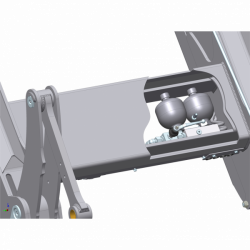 Das SMS Stoßdämpfer System erhöht den Fahrkomfort und vermindert die Belastung des Frontladers und des Traktors.