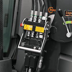 Hauer Frontlader werden für viele Anwendungen eingesetzt. Daher ist es ausschlaggebend, einen Frontlader so universell wie nur möglich nach den jeweiligen Bedürfnissen auszustatten. Aus diesem Grund bietet Hauer für seine Frontlader eine Vielzahl an Zubehör wie z.B. hydraulische Selektionsventile zum Bedienen von Arbeitsgeräten, ein SMS Stoßdämpfer System zum Abfedern von Belastungen oder aber auch ein Sicherheitspaket für die Verwendung des Arbeitskorbes an.