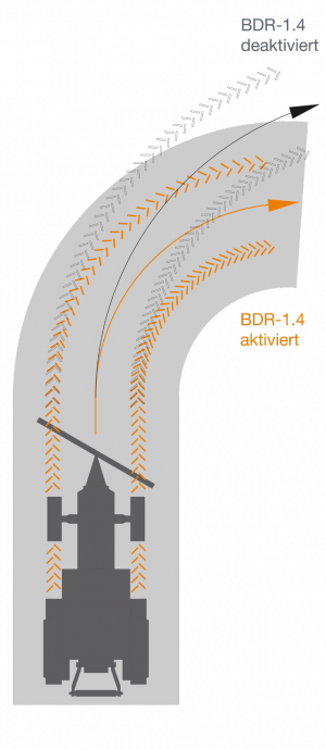The BDR 1.4 ground pressure control system transfers a selectable percentage of the attachment weight to the front axle thereby reducing the load on the attachment. The system is very responsive and the BDR 2.1 offers precision control for excellent performance in the most difficult terrain.